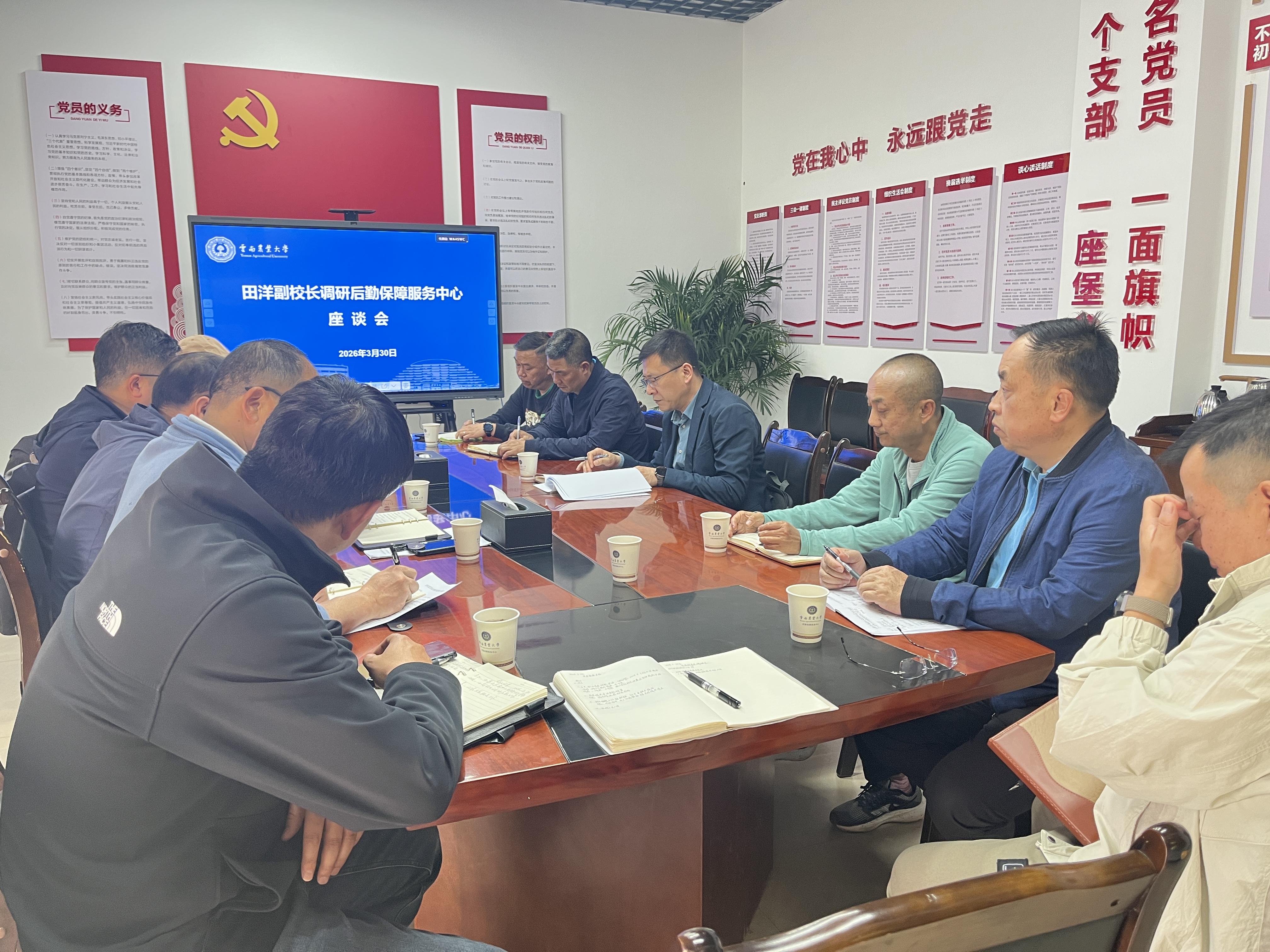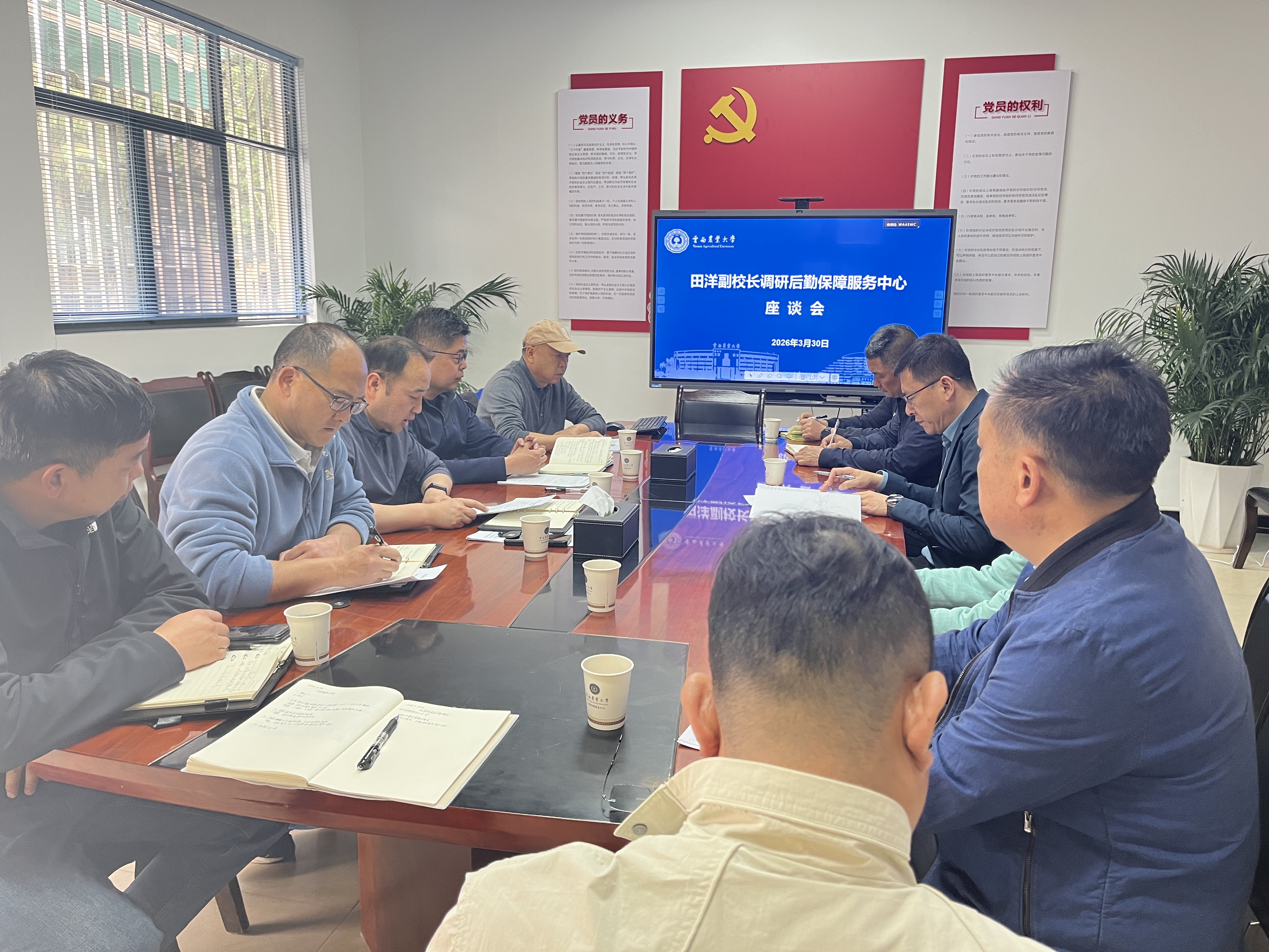 3月30日下午,田洋副校长深入后勤保障服务中心调研指导工作,并在中心一楼会议室召开座谈会。会议由中心党支部书记李国治主持,全体领导班子成员及副科级以上干部参加了会议。